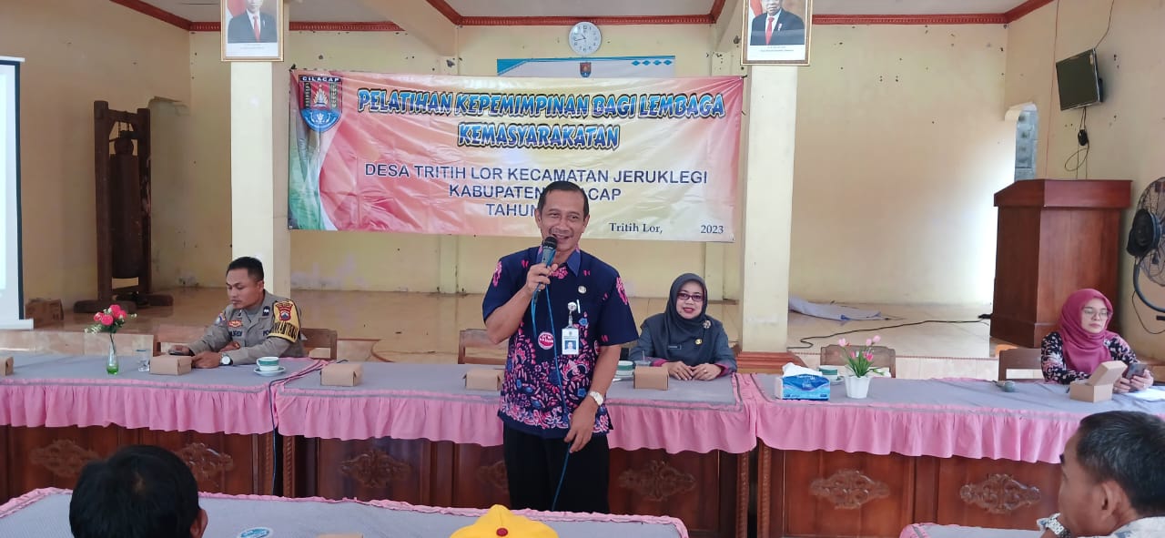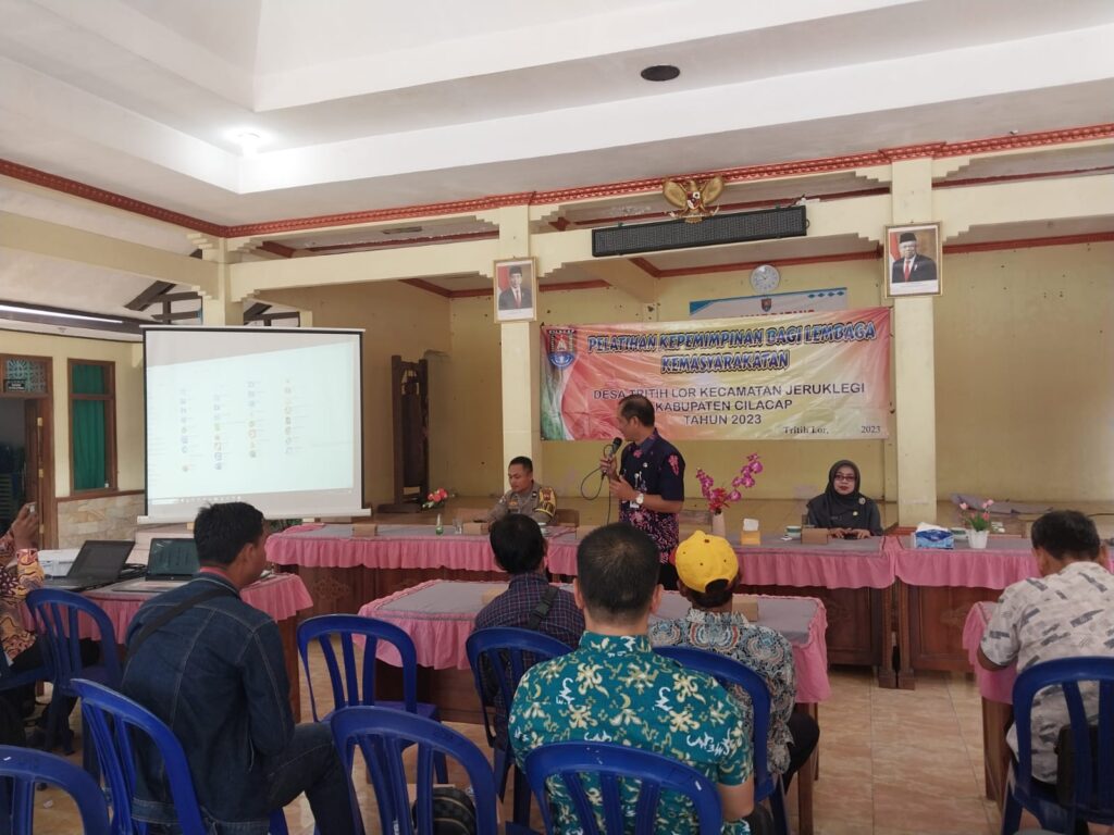 Pelatihan Kepemimpinan bagi Lembaga Kemasyarakatan di Balai Desa Tritih Lor yang dihadiri oleh RT dan RW se-Desa Tritih Lor