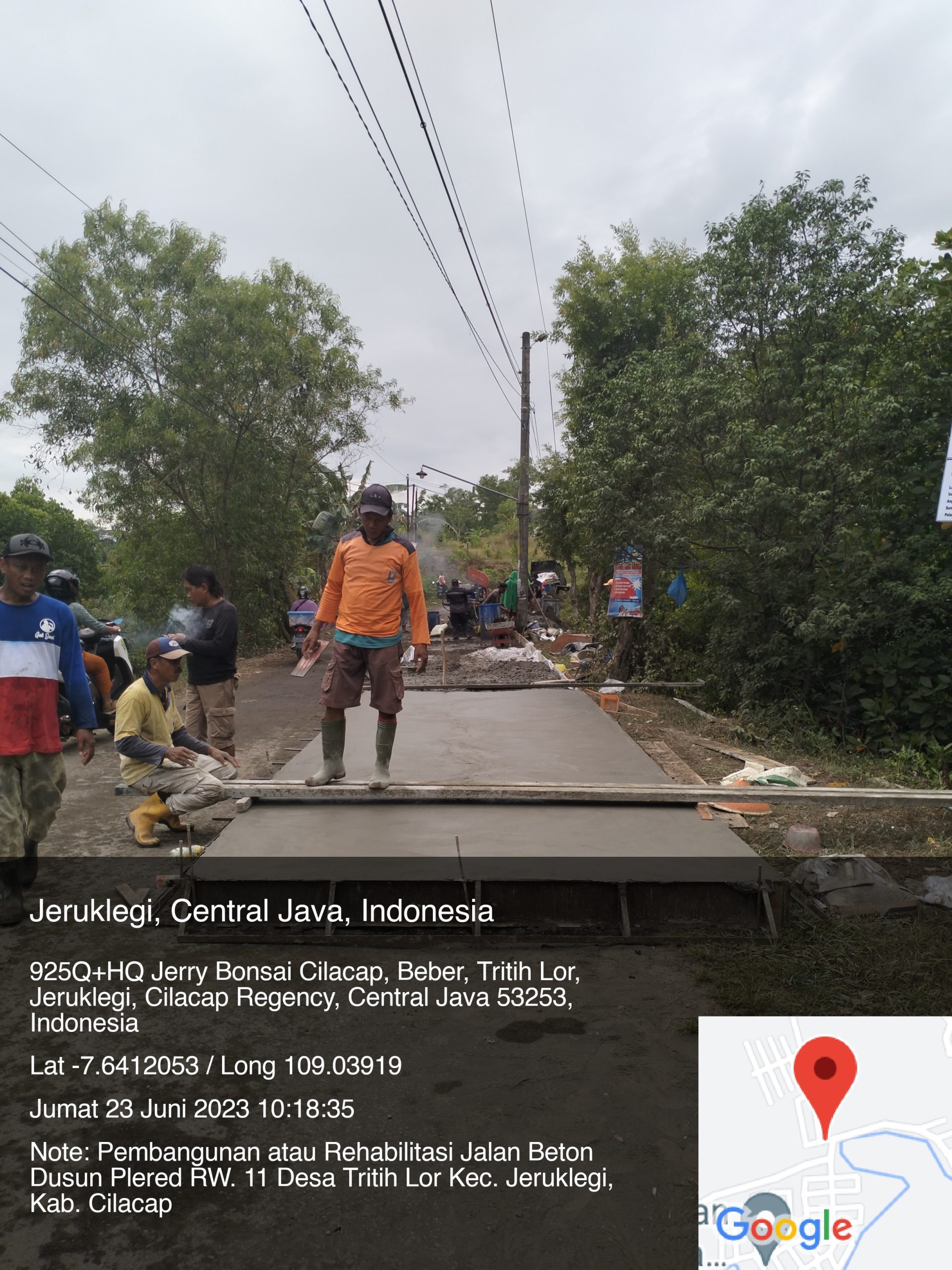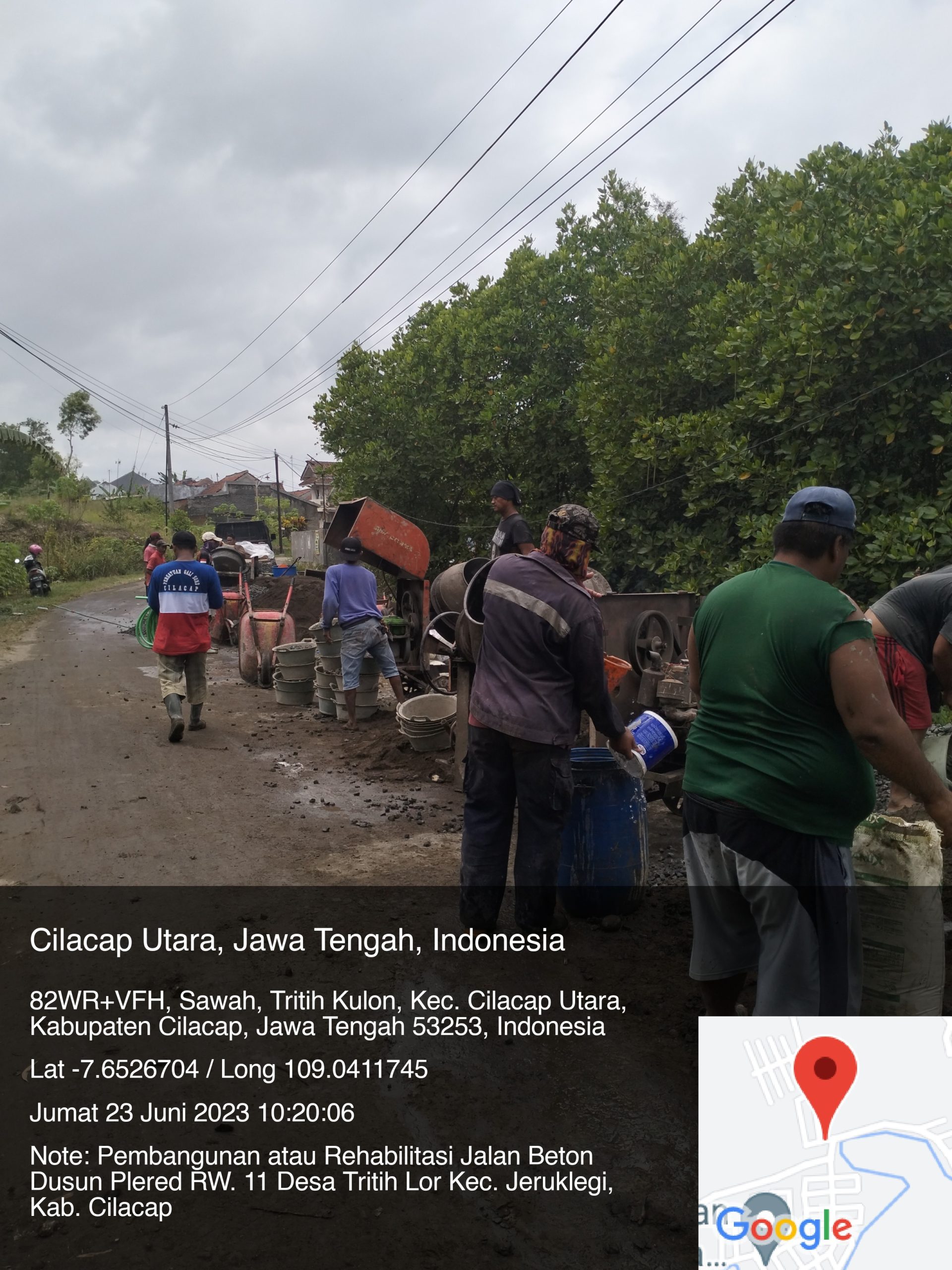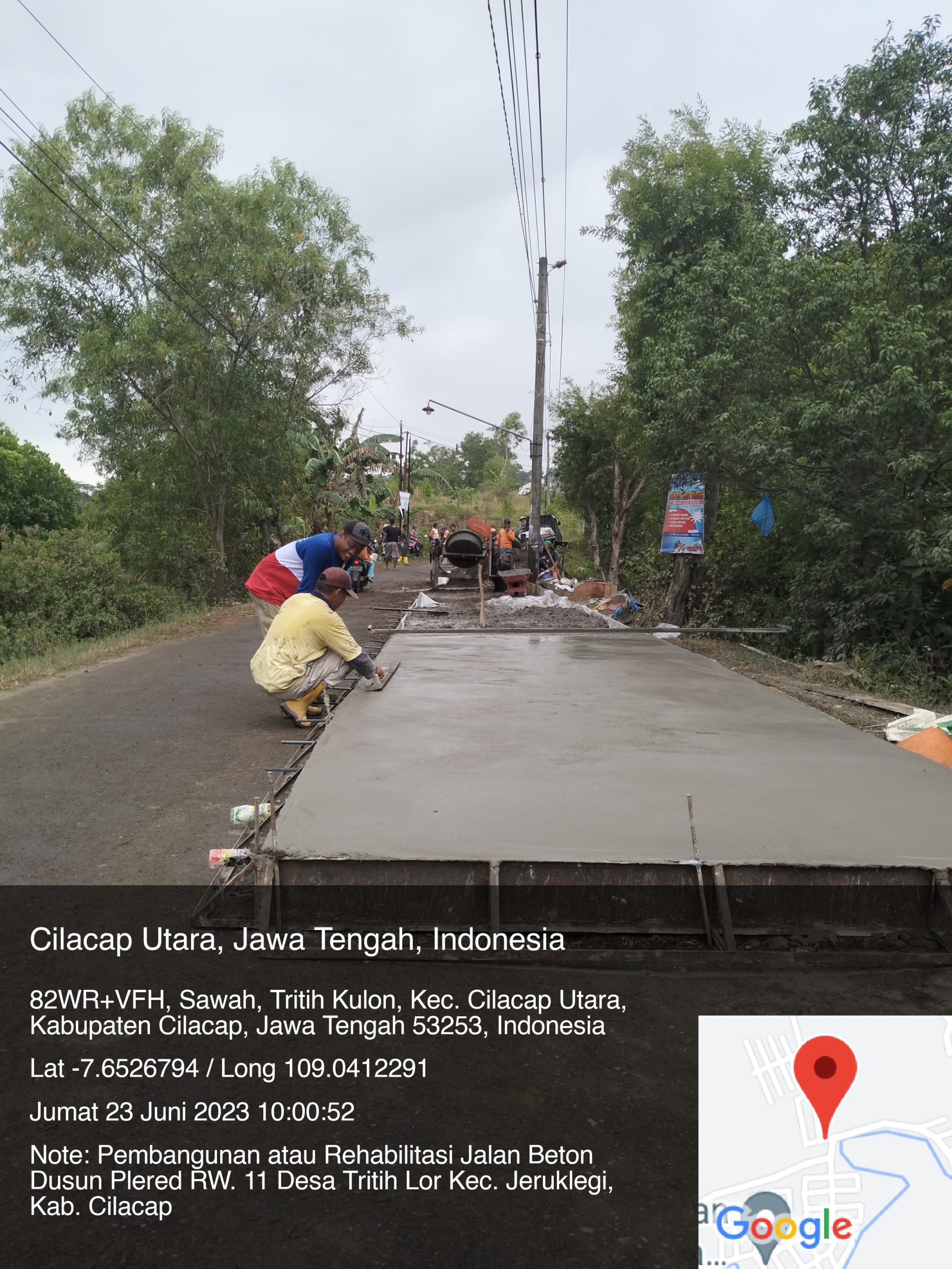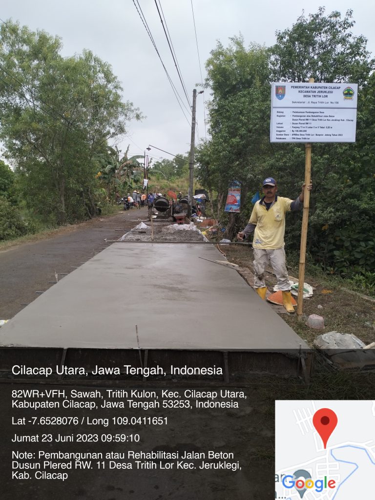 Jumat, 23 Juni 2023. Pelaksanaan pembangunan atau rehabilitasi jalan beton yang berlokasi di Dusun Plered RW. 11 Desa Tritih Lor, Kecamatan Jeruklegi, Kabupaten Cilacap sedang proses pengerjaan.