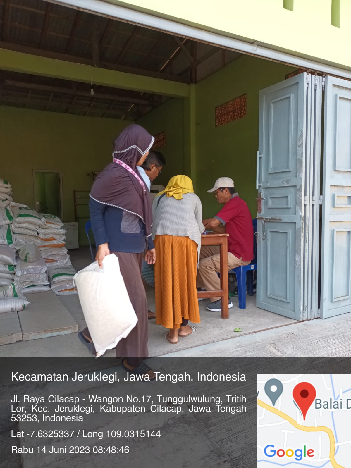 Rabu, 14 Juni 2023. Penyaluran Bantuan Cadangan Pangan Pemerintah (CPP) di Desa Tritih Lor berupa Cadangan Beras Pemerintah (CBP) dengan total penerima sebanyak 703 orang.